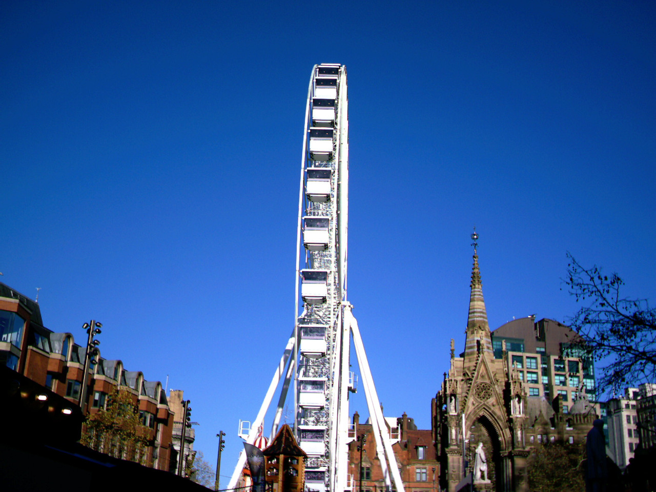in my city the christmas markets r up, which are tons n tons of super nice stalls around the city that stay up until like xmas i think. u can buy overpriced food and overpriced goodies and jewelery and christmas gifts and u can walk around n have a good time! its super vibey n pretty. this yr theres also quite a few carnival games, and also this massive ferris wheel! last week me n 3 of my friends were sat on da bus chatting abt it n decided to go tuesday, since we were all off college!