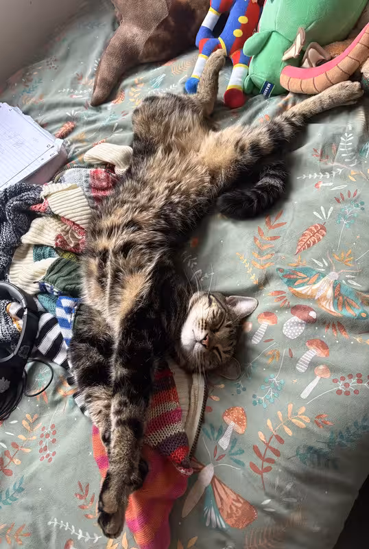 I have a cat. his name is chopper. he's named after the war criminal star wars droid cos my fam r all geeks. He's stupidddd and i lovee himmm